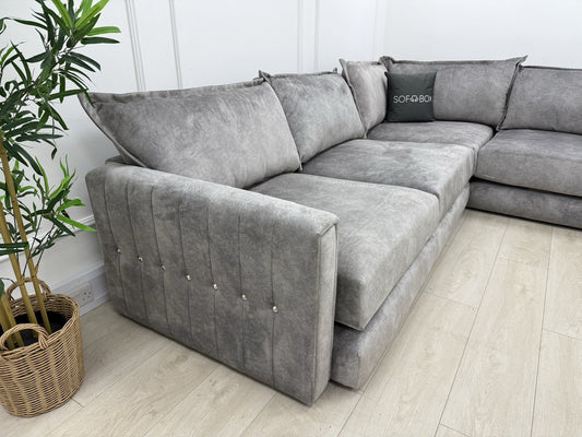 Sofology Titan Corner Sofa & Footstool In Grey Velvet