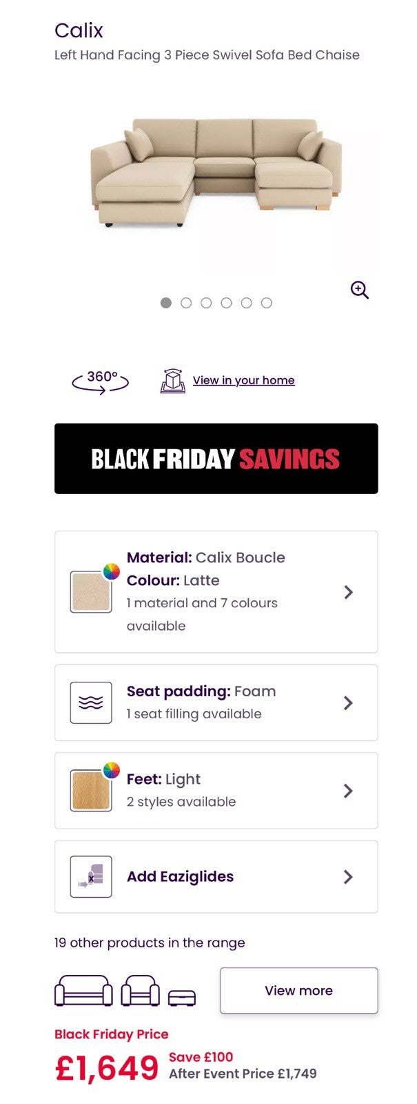 DFS Calix Swivel Corner Sofa Bed In Latte