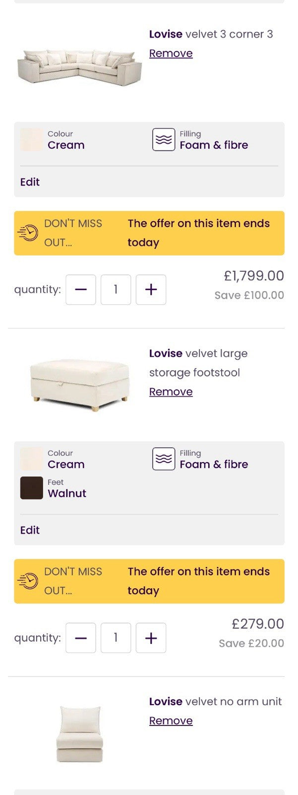 DFS Lovise XL Corner Sofa In Cream Velvet