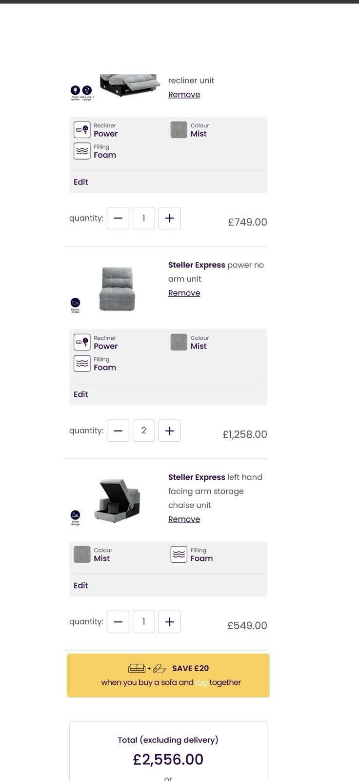 Corner/additional sections can be purchased from DFS just search "Steller Express" and should arrive within a couple of weeks