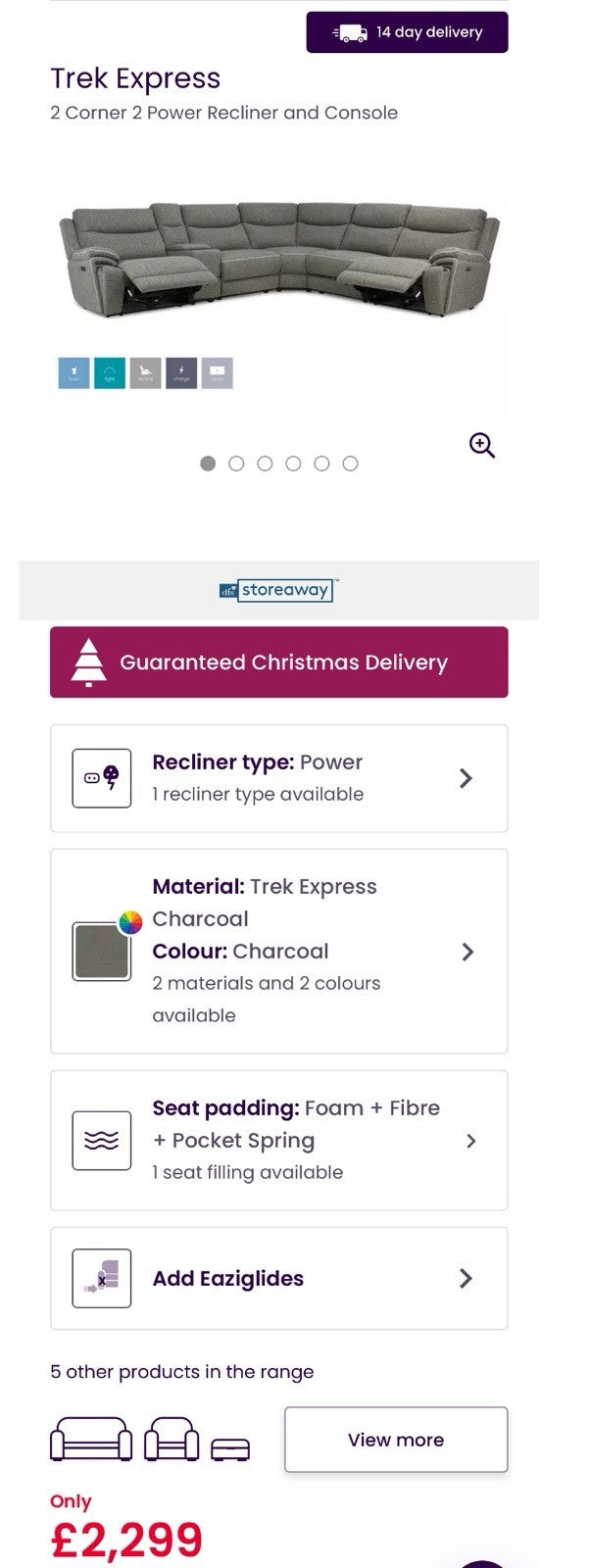Delivery is usually within 3-5 working days. Same or next day delivery may be available subject to availability. Due to space limitations we cannot store sofas for longer than 1 week.