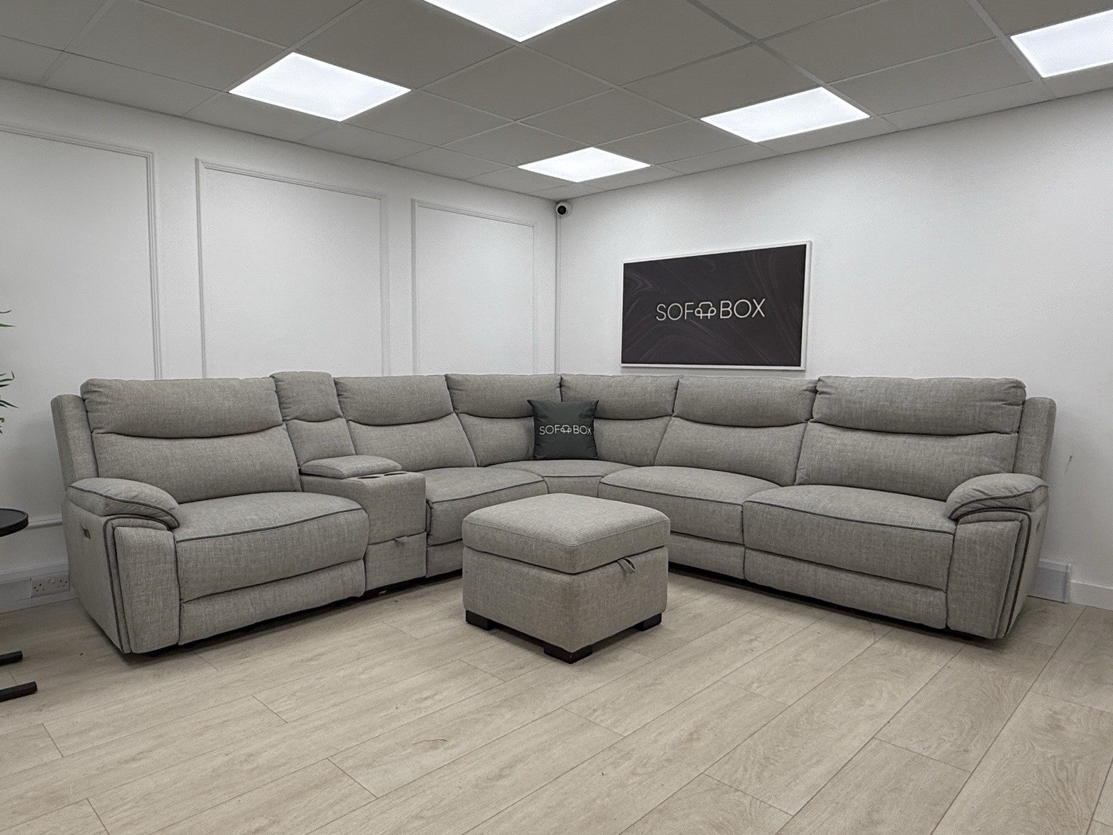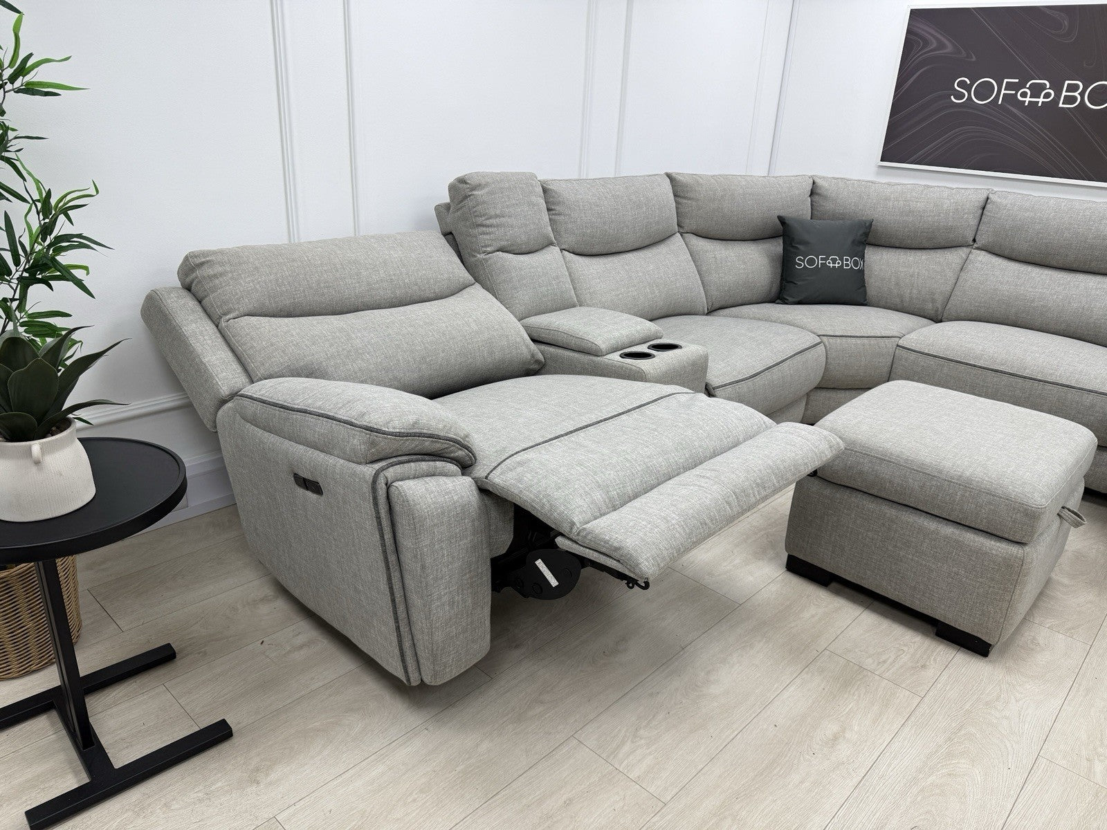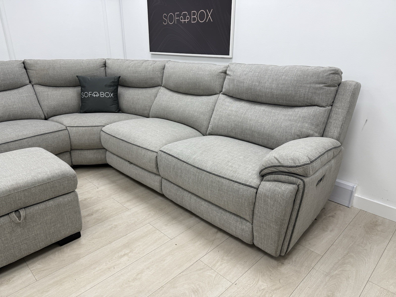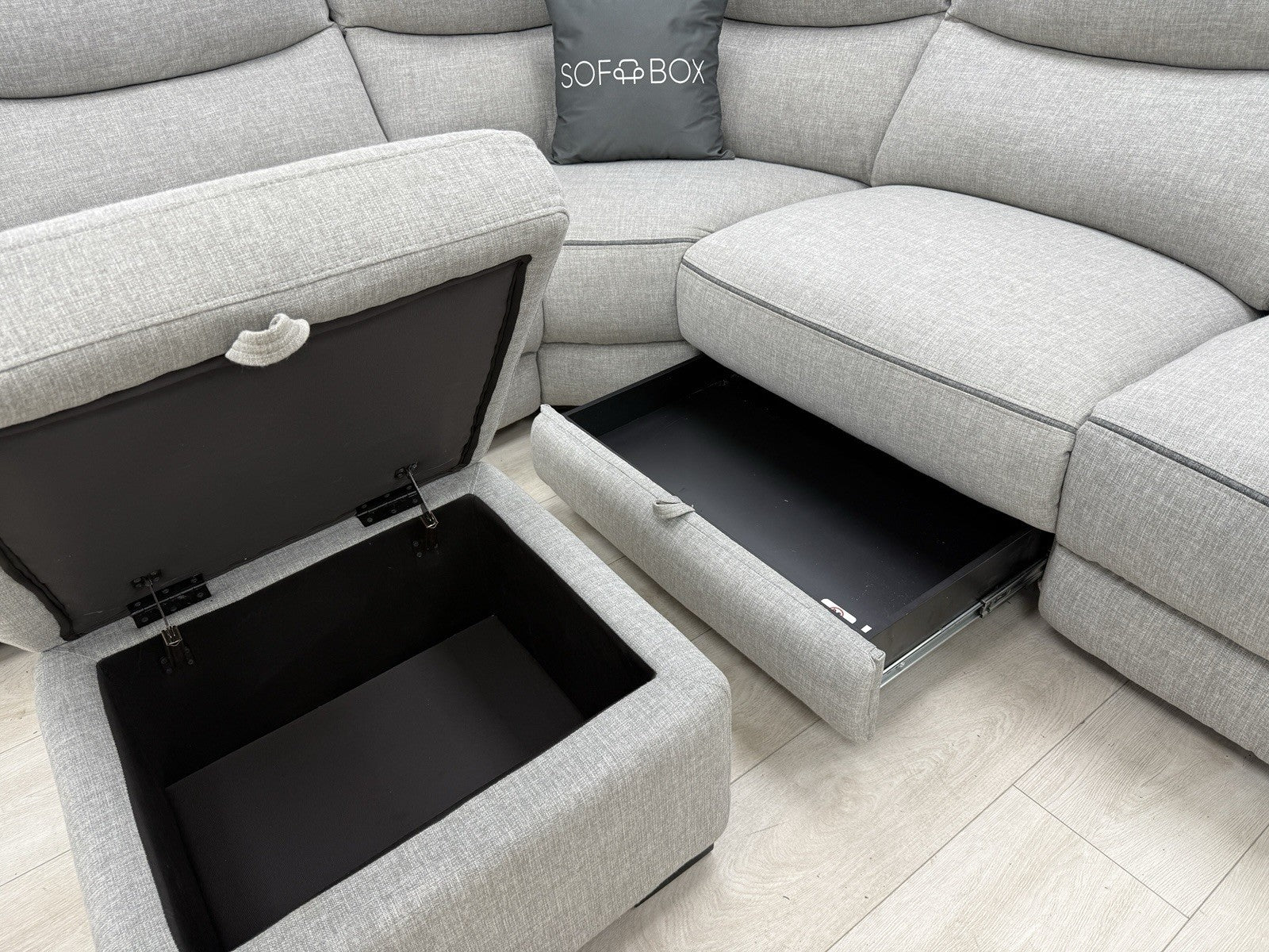DFS Trek Storeaway Power Recliner Corner Sofa In Light Grey