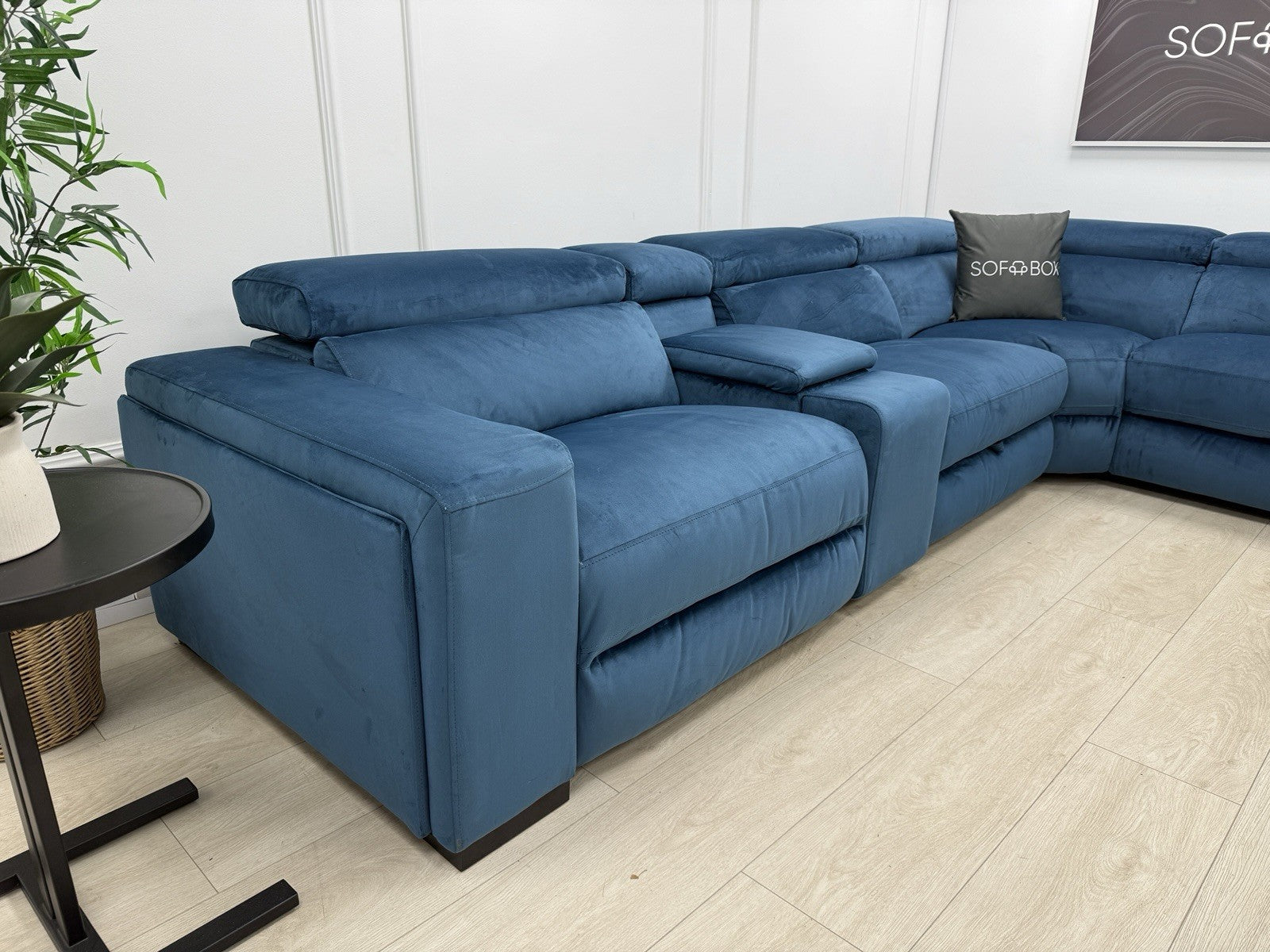DFS Wander Power Recliner Corner Sofa In Blue Velvet