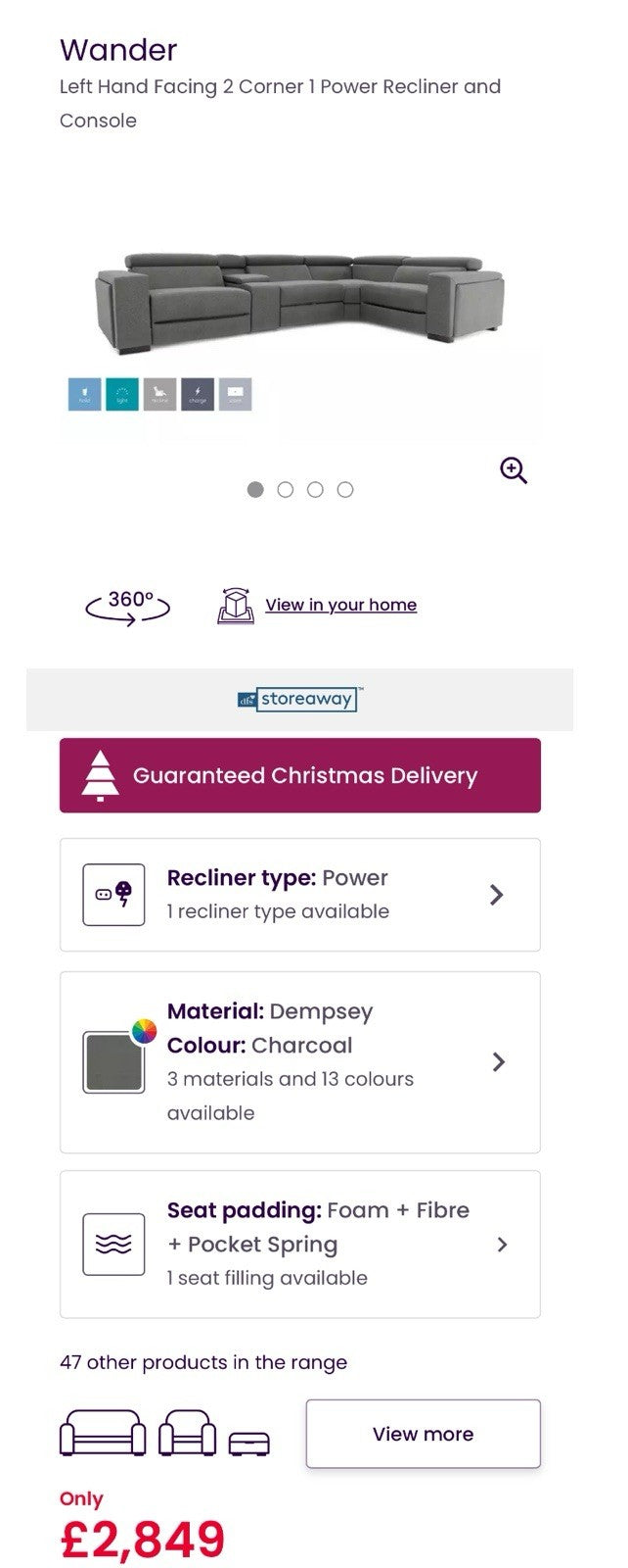 DFS Wander Power Recliner Corner Sofa In Charcoal Grey