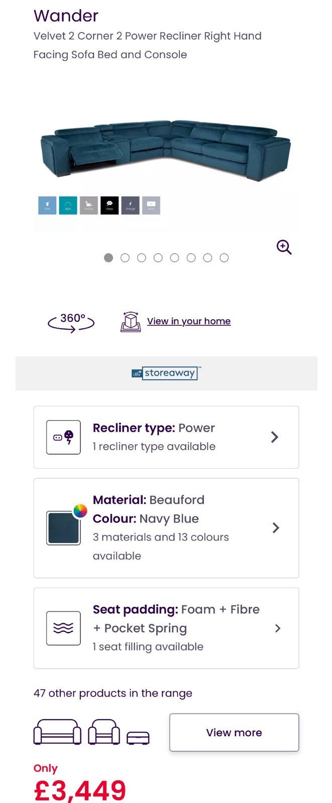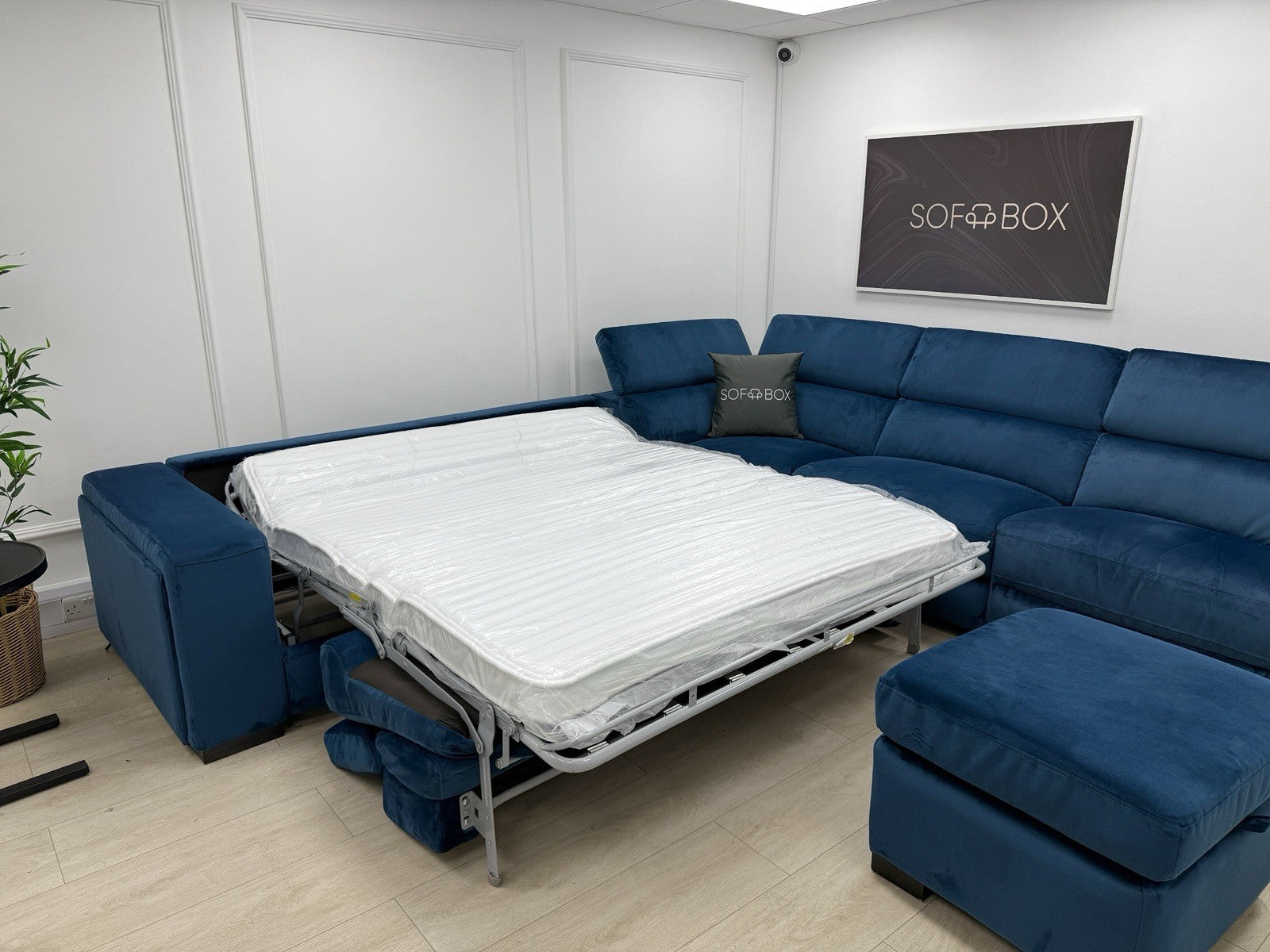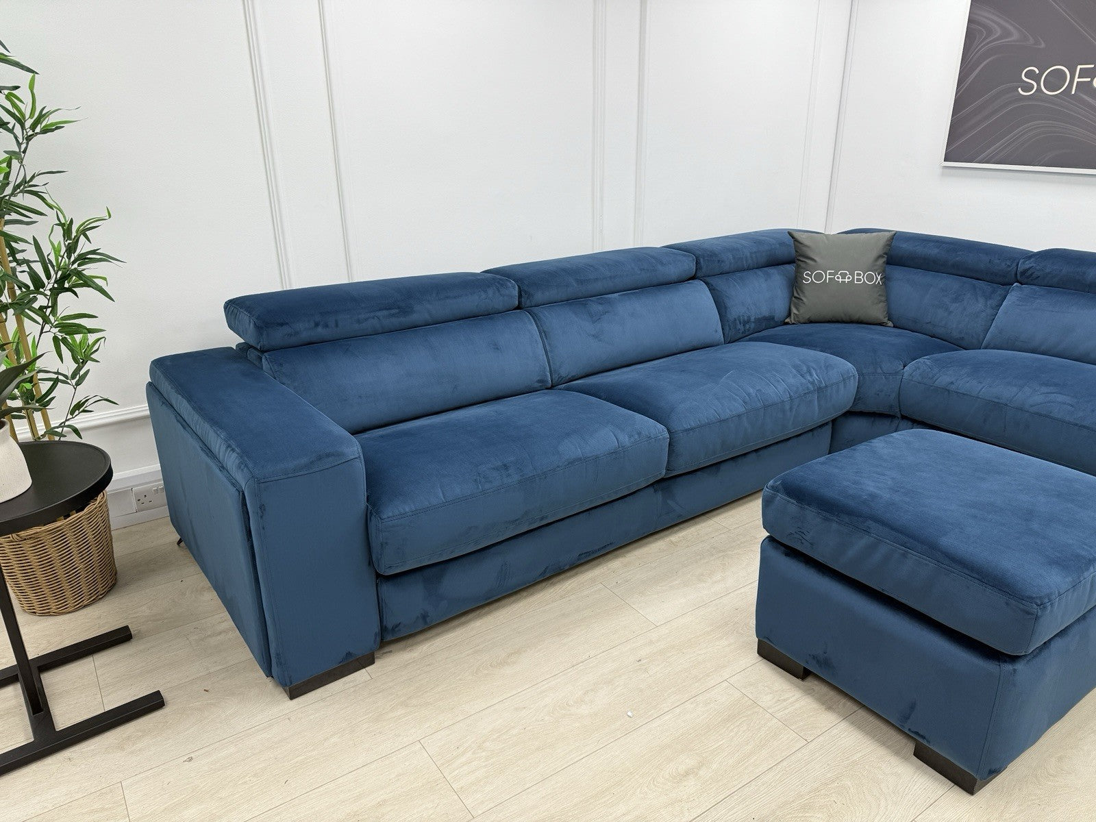 DFS Wander Recliner Corner Sofa Bed Footstool In Blue Velvet