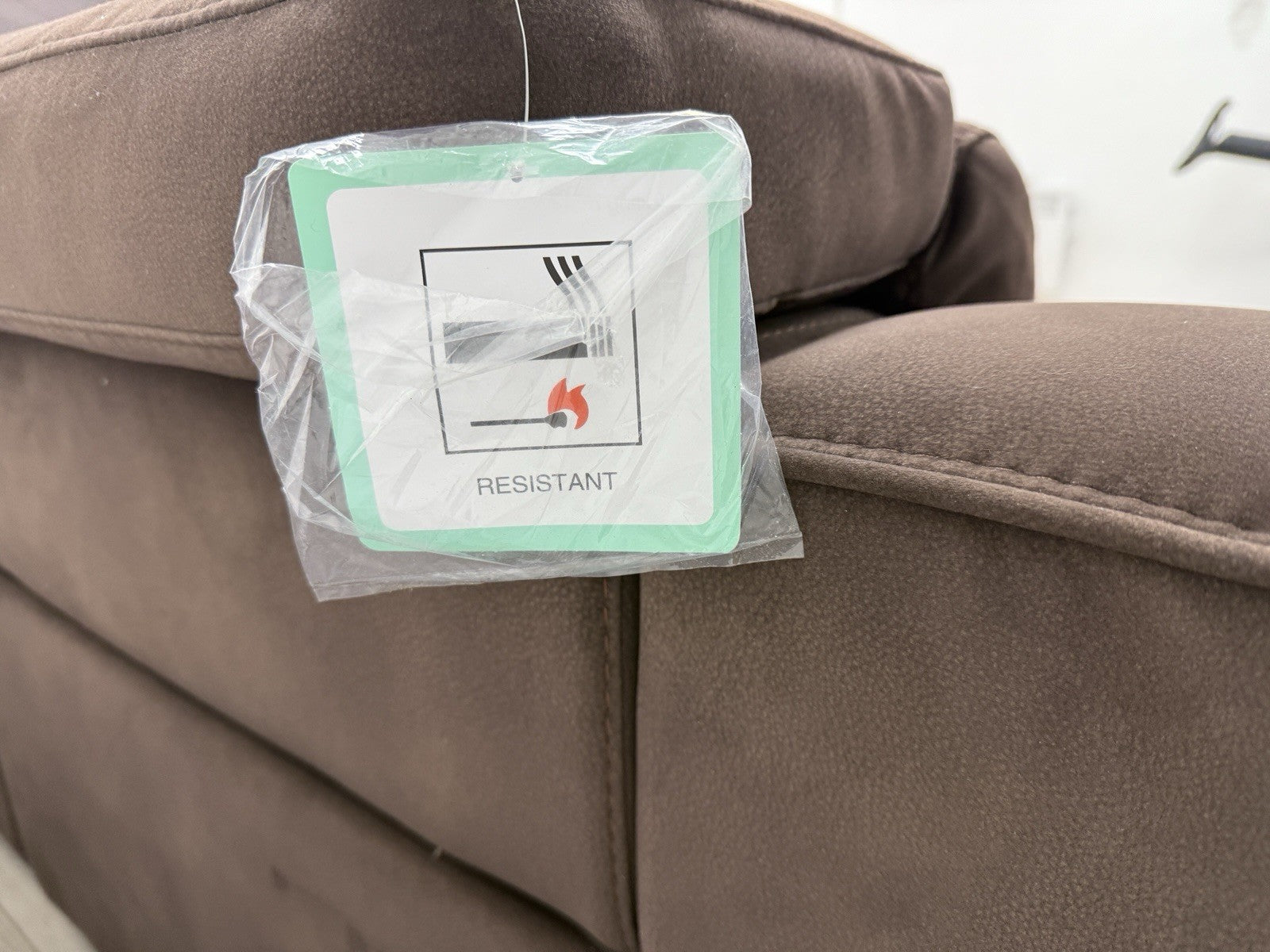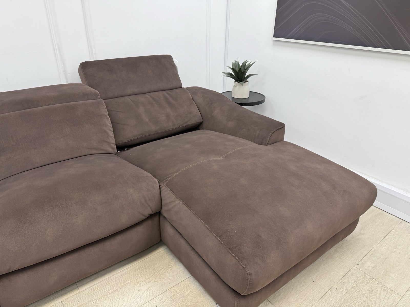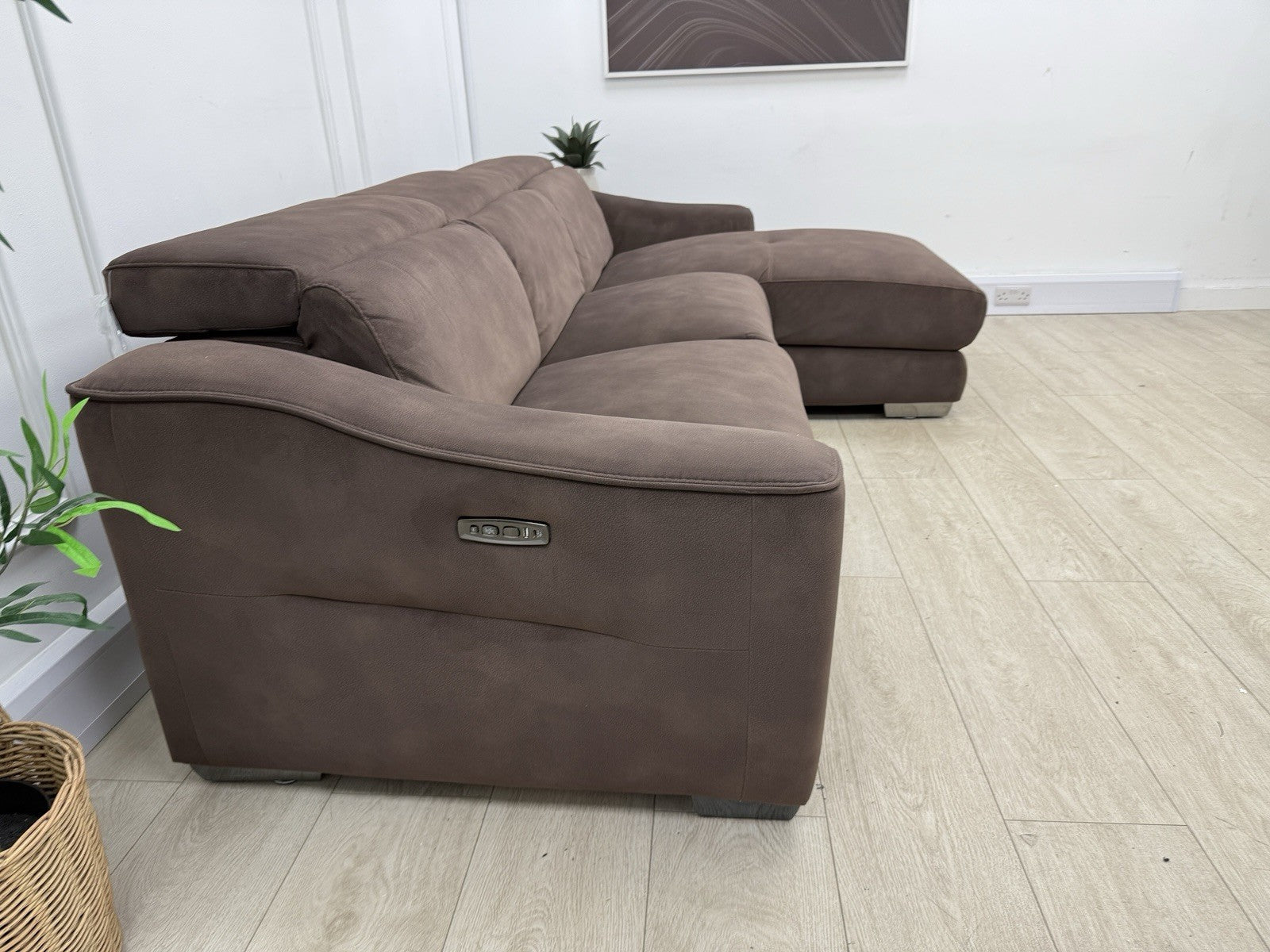 Furniture Village Xavier 3 Seater Chaise Sofa Power Recliner/Headrests In Brown Fabric