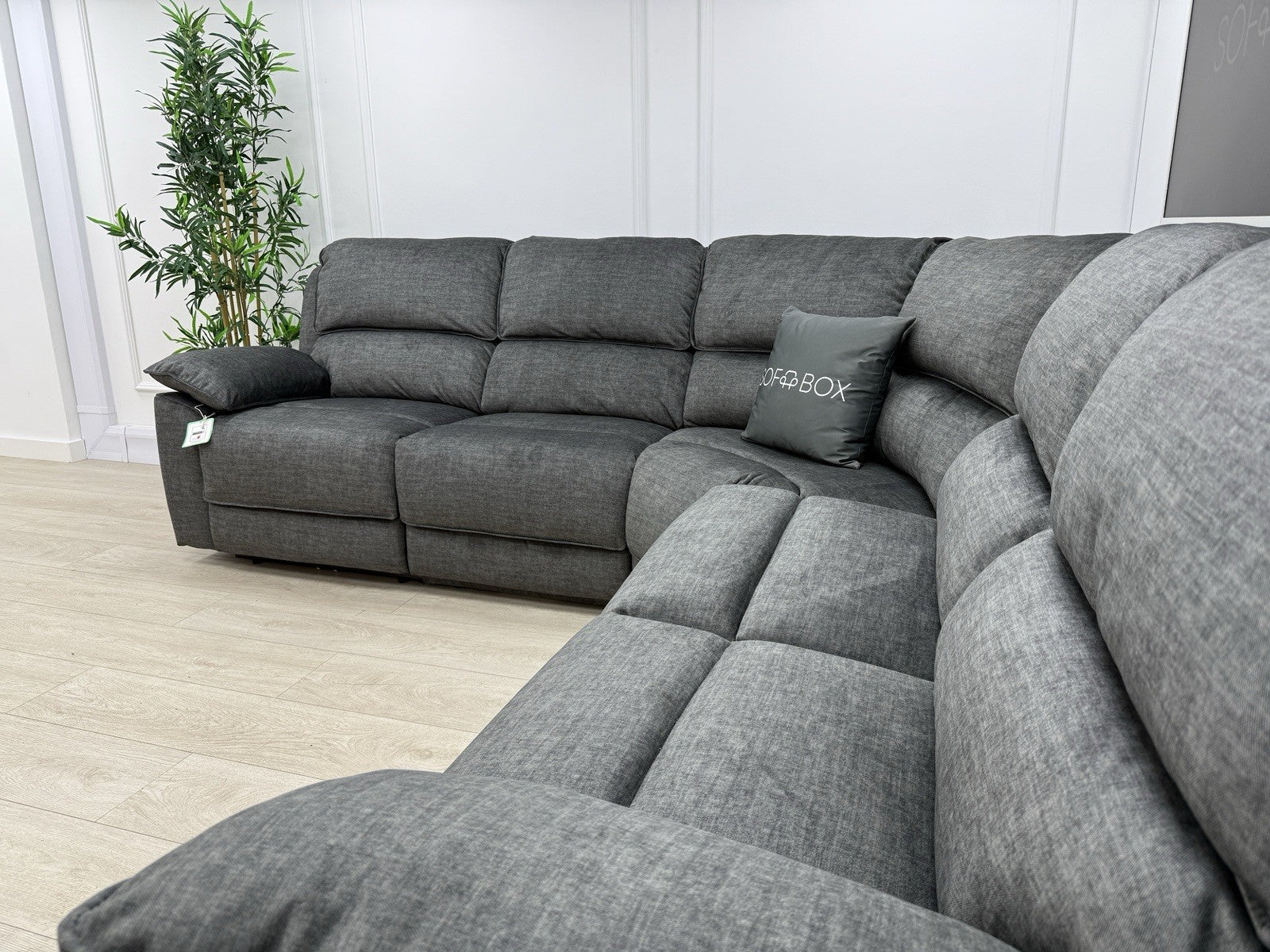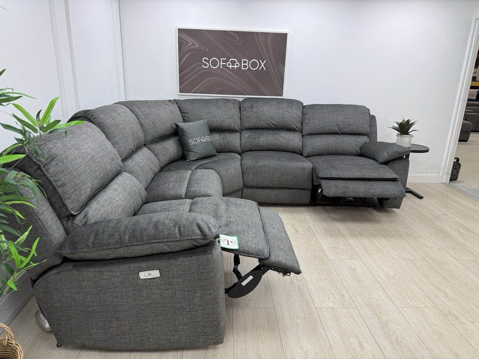 Oak Furnitureland Goodwood Power Recliner Corner Sofa In Plush Charcoal Fabric