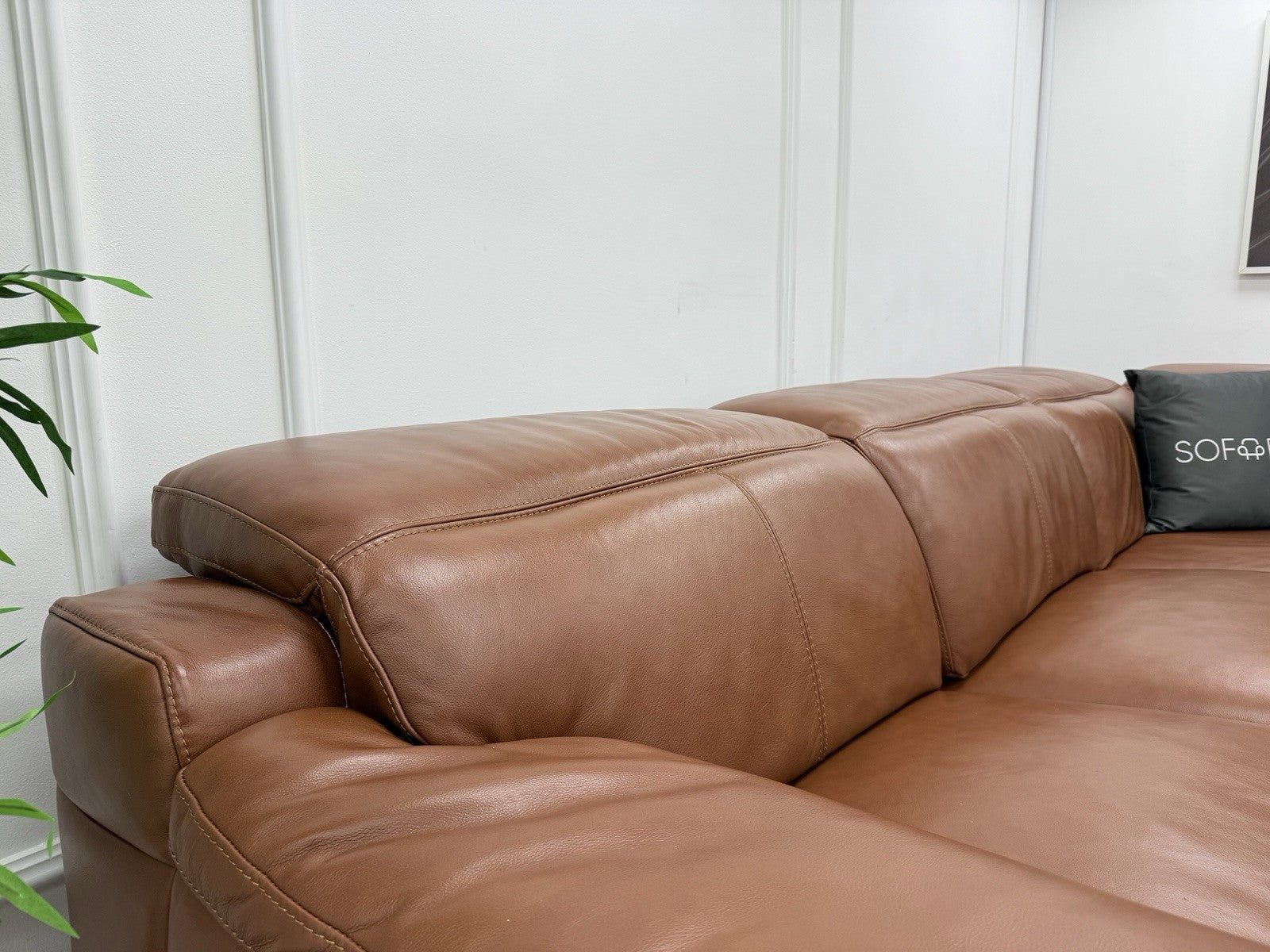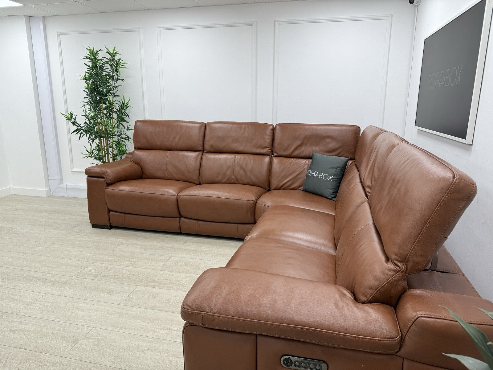 Sofology Laurence Power Recliner Corner Sofa In Tan Leather